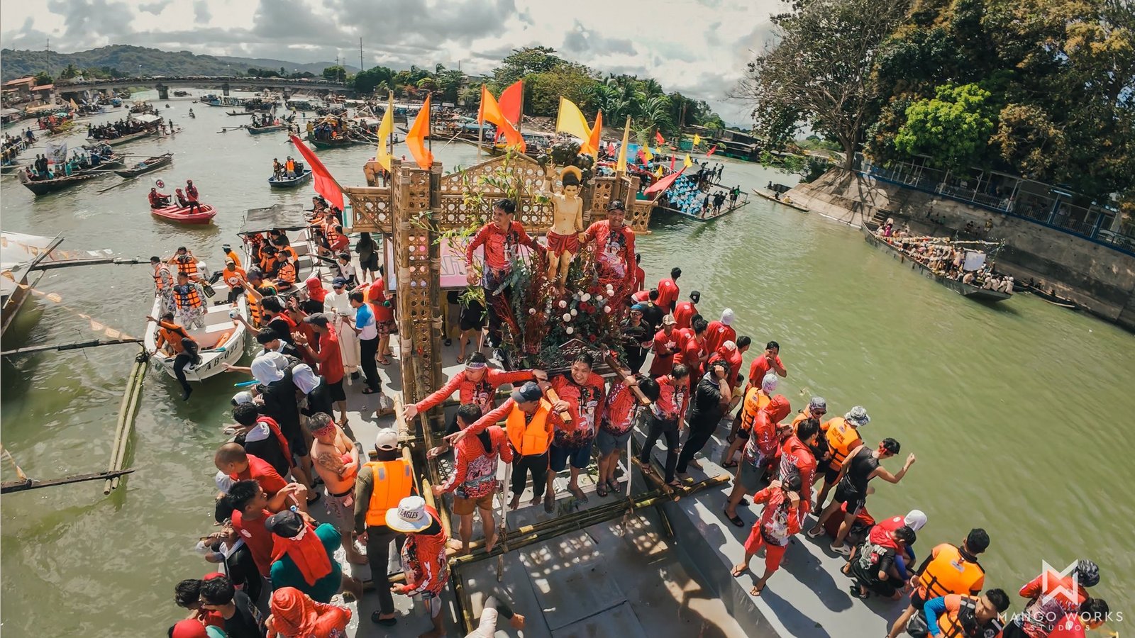 : Thousands of devotees participate in the traditional fluvial procession celebrating the Feast of San Sebastian Martyr at the Lumban river on sunday in Lumban Laguna.
