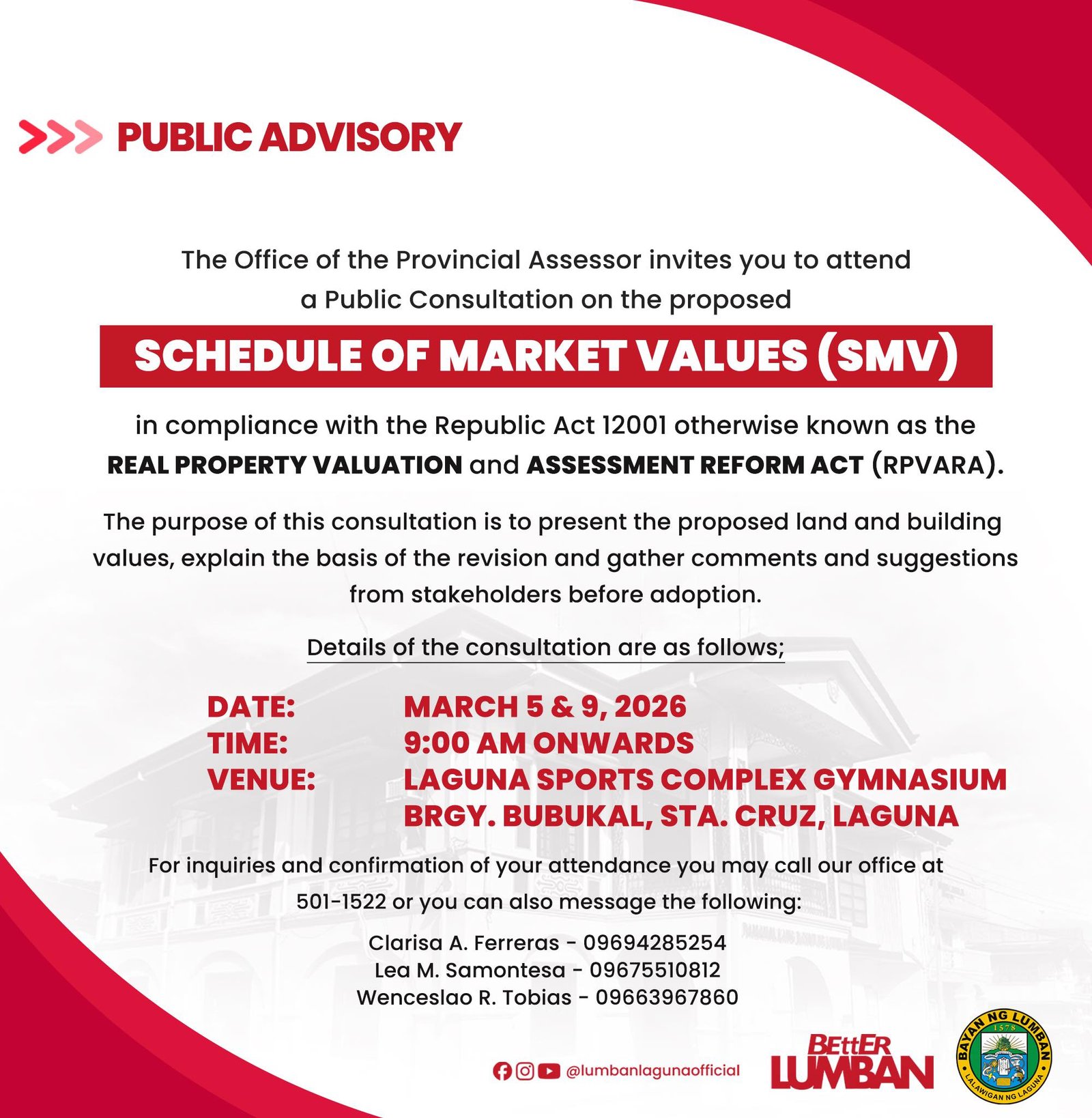 Isang taos puso pong pagbati at pagkilala sa mga bagong halal na opisyal ng Lumban Tourism Council.Kamakailan ay pormal ng nanumpa sa ating Punumbayan Mayor Belen Raga, bilang tanda ng kanilang pagtanggap sa mahalagang tungkulin na pangunahan at higit pang paunlarin ang sektor ng turismo sa ating bayan.Nawa’y magsilbi itong panibagong simula ng mas masigla at mas makabuluhang pagtutulungan upang maitaguyod ang mga programa at proyektong magpapalakas sa turismo at magbibigay ng mas maraming oport...